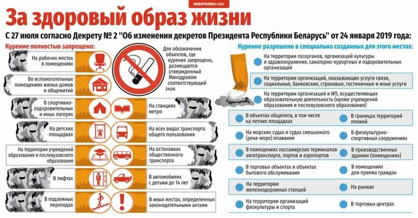 Уважаемые могилевчане, обратите внимание! Еще в конце июля 2019 года вступил в силу Декрет № 2, ужесточающий антитабачное законодательство. Важным шагом для создания бездымной среды в местах массового посещения стало разделение объектов, в которых запрещается курение, на две категории. Первая — где полностью запрещено курение и невозможно создавать специальные для него зоны, а вторая — где курение запрещено, если там не созданы места, специально предназначенные для этой цели.