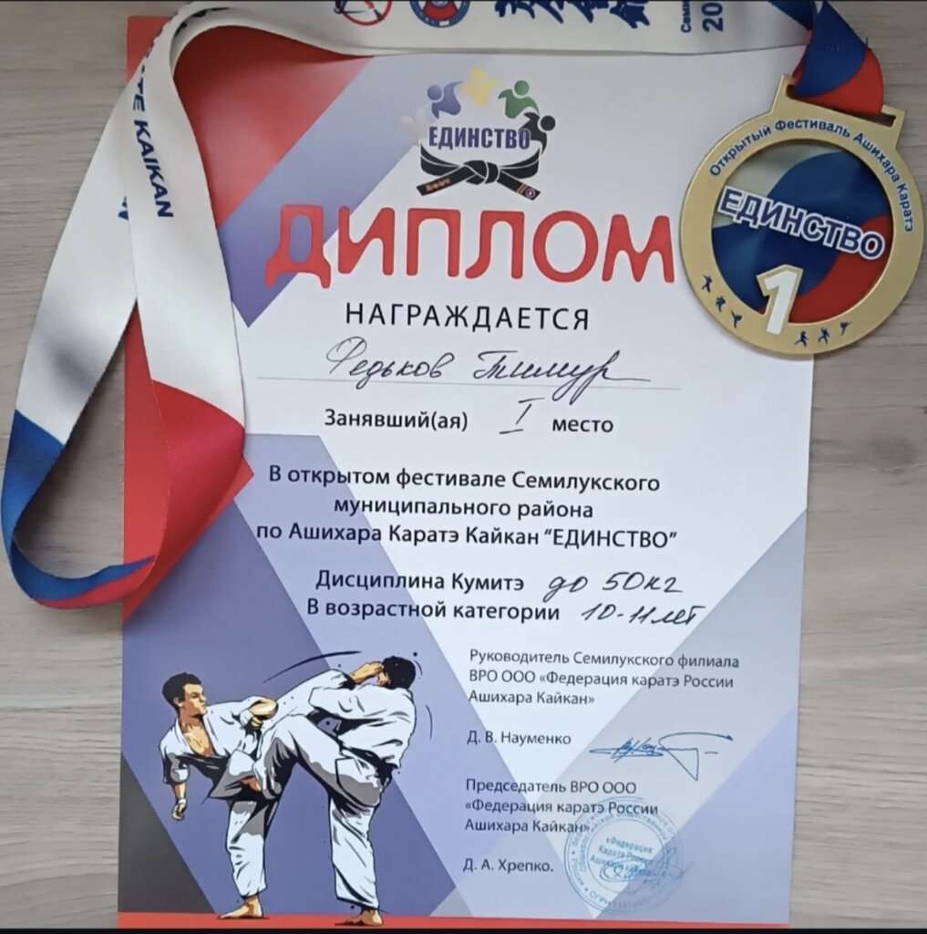 Как результат — два первых места на турнире в городе Королёв (Московская область) в дисциплинах «Кумите» и «Сила удара». Первое место в городе Семилуки (Воронежская область) — в дисциплине «Кумите». Два первых места в городе Клинцы (Брянская область) в дисциплинах «Кумите» и «Сила удара».