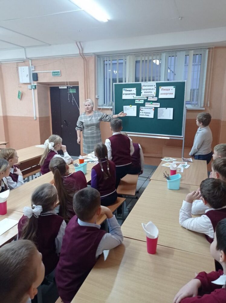 1 декабря в 1 «А», 2 «А», 3 «В» и 4 «В» классах прошел классный час на тему «Питание и здоровье»